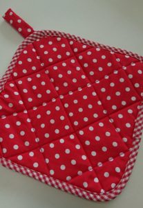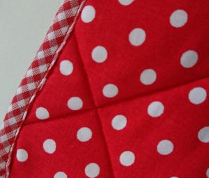 Der Topflappen ist innen doppelt mit einer hitzeabweisenden Einlage gefüttert und kann auch gut als Topfuntersetzer genutzt werden.