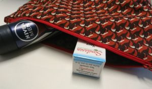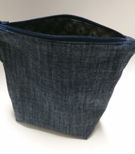 Die Grösse dieser Kosmetiktasche ist wie gemacht um bei der Arbeit im Büro gelagert zu werden. Das Schnittmuster entstand, als eine Freundin mich bat eine Kosmetiktasche zu nähen, in der sie ihre „Mittagszahnbürste“, die Zahnpasta, die Haarbürste, etc., verstauen kann.